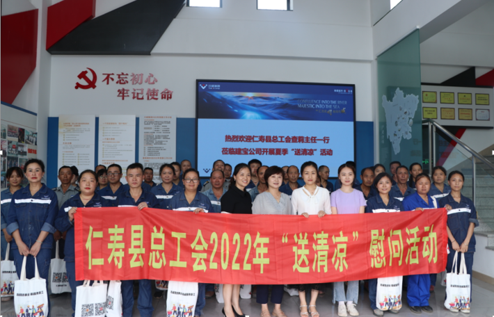 鏡頭一:上級工會心系企業(yè)員工,送清涼到企業(yè)真情暖人心。為確保高溫季節(jié)廣大一線員工的身體健康,7月15日,仁壽縣總工會查莉主任一行到建寶公司,開展夏季“送清涼”慰問活動。向辛勤工作在一線的員工表示親切的問候,并貼心為大家送上防暑降溫物品。親切囑咐員工們在高溫下做好防暑降溫工作,確保度過一個安全、健康的夏季。