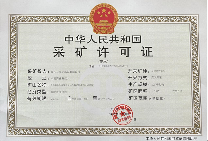 歲末收官,喜報(bào)頻傳!12月26日,歷經(jīng)179個(gè)日夜,星船城瑞達(dá)公司成功取得米易縣灣丘水泥用石灰?guī)r礦采礦許可證,為集團(tuán)“控資源、穩(wěn)糧倉”方針的落實(shí),打下了堅(jiān)實(shí)的基礎(chǔ)。